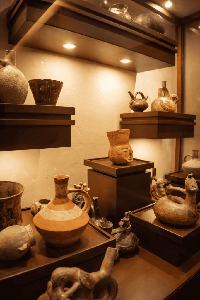 El recorrido reúne piezas representativas de la rica cultura preincaica e incaica: cerámicas, textiles, objetos ceremoniales y elementos que muestran cómo las civilizaciones antiguas comprendían el mundo, la naturaleza y su lugar dentro de él.